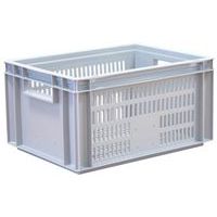 Euronorm-stapelbakken verkrijgbaar in verschillende hoogtes. De bakken hebben opengewerkte of dichte wanden en bodems en hebben handgrepen met gaten of schelphandgrepen.