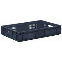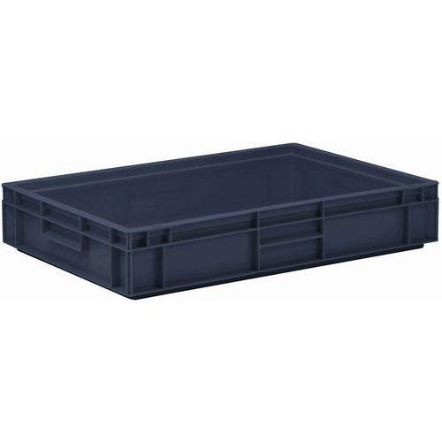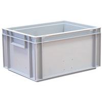 Euronorm-stapelbakken verkrijgbaar in verschillende hoogtes. De bakken hebben opengewerkte of dichte wanden en bodems en hebben handgrepen met gaten of schelphandgrepen. Gemaakt in de EU
