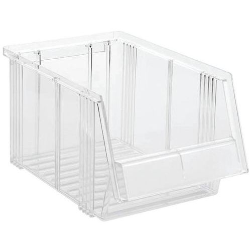 Onze stapelbakken zijn ontworpen voor dagelijks gebruik in winkels, productielocaties en magazijnen. Ons assortiment bevat 8 bakken van verschillende maten. Deze bakken zijn ontworpen om te passen bij alle legborden, kasten, draaiende steunen en standaard industriële werkplekken. De bakken van dezelfde breedte kunnen stabiel worden gestapeld, zelfs als ze van verschillende lengten zijn. De rechte zijkanten zorgen voor een doeltreffend gebruik van de ruimte. De keuze van de kleur biedt een onbeperkt aantal mogelijkheden voor het organiseren van het opbergen afhankelijk van de wensen en voorkeuren van de klant. Met de transparante bakken kan de inhoud beter worden geïdentificeerd. Niet vatbaar voor oliën en de meeste zuren en oplosmiddelen. De levendige kleuren zorgen ervoor dat het gezochte onderdeel eenvoudiger wordt gevonden. Gemaakt in de EU