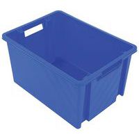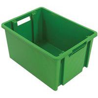 Stapelbare bak met open handgrepen ter vereenvoudiging van het hanteren. Uitstekende mechanische en chemische weerstand. Groot steunoppervlak voor uitstekende stabiliteit bij het stapelen. Houtnerf voor versteviging voor een grotere stabiliteit bij het stapelen.