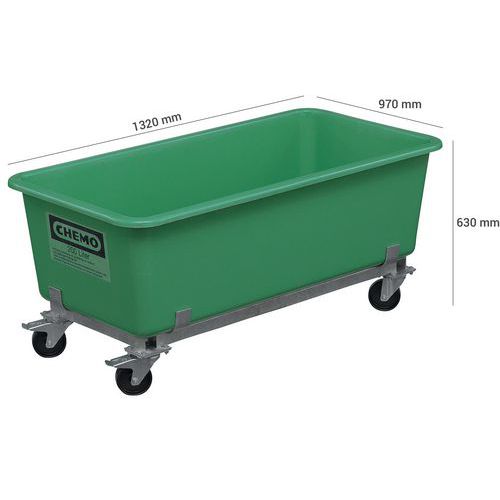 Stapelbare bak op wielen - Lengte 1180 tot 1320 mm - 300 en 550 l - Cemo