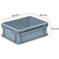 Stapelbare Euronorm-bak grijs Rako, Totale inhoud: 12 L, Stapelbaar: ja, Totale hoogte: 145 mm