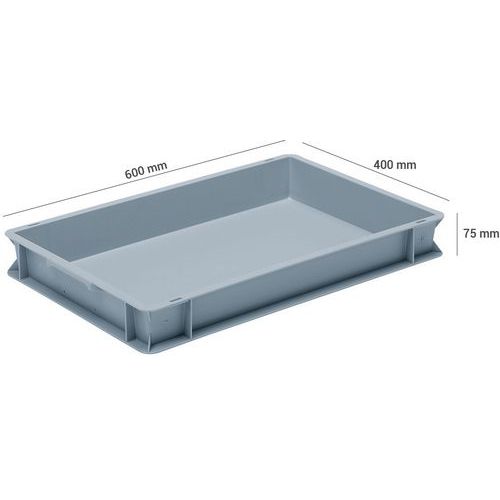 | Productnaam | Stapelbare Euronorm-bak grijs Rako, Totale inhoud: 14 L, Stapelbaar: ja, Totale hoogte: 75 mm |