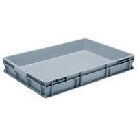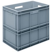Stapelbare Euronorm-bak. Met gesloten wanden, versterkte gesloten bodem en handgrepen met gaten. Gemaakt in de EU Culinair Klantgarantie : 3 jaar