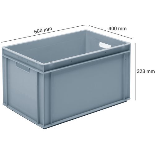 | Productnaam | Stapelbare Euronorm-bak grijs Rako, Totale inhoud: 60 L, Stapelbaar: ja, Totale hoogte: 323 mm |