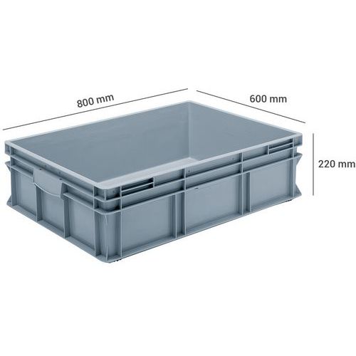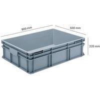| Productnaam | Stapelbare Euronorm-bak grijs Rako, Totale inhoud: 90 L, Stapelbaar: ja, Totale hoogte: 220 mm |
