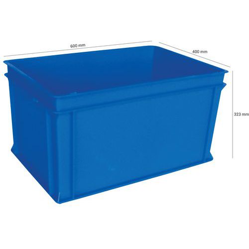 Stapelbare Euronorm-bak. Met gesloten wanden en bodem en Shell handgrepen.