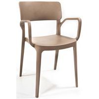 Stapelbare kunststof stoel Wing met armleuningen, volledig gemaakt van polypropyleen, schokbestendig en slijtvast. Zijn moderne design past perfect in uiteenlopende omgevingen, zowel binnen als buiten. Bestand tegen slechte weersomstandigheden, geschikt voor buitengebruik, bestand tegen warmte en koude. Licht en hanteerbaar, met een gewicht van slechts 6 kg. Eenvoudig te verplaatsen en te reorganiseren. Stapelbaar wat praktisch is bij het opbergen: meerdere stoelen kunnen worden gestapeld om ruimte te besparen.
