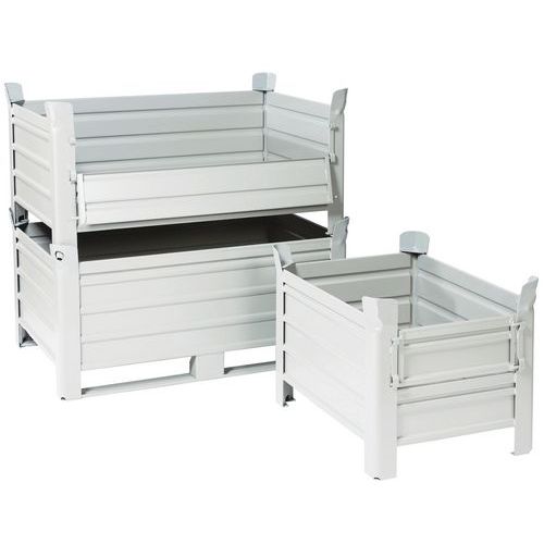 Stapelbare palletkist - dichte wand - op poten - 1 neerklapbare zijde Stapelbare palletkist - dichte wand - op poten - 1 neerklapbare zijde