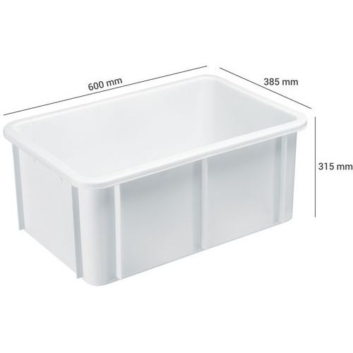 Rechthoekige kunststof bak voor voedingsmiddelen, voldoet aan de Euronorm-afmetingen.