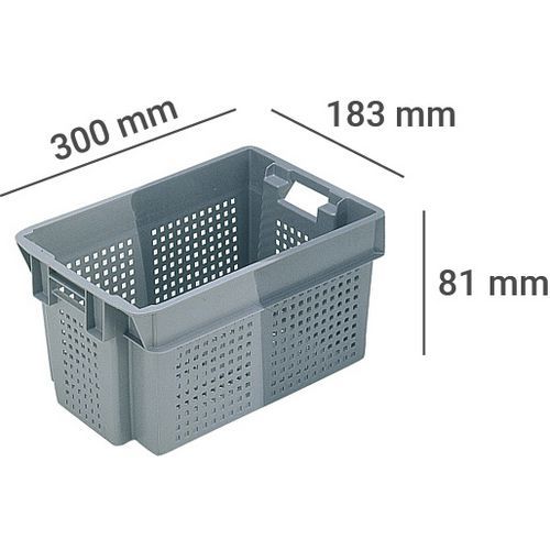 Stapelbare tweezijdige bak, Totale inhoud: 50 L, Totale hoogte: 300 mm, Totale breedte: 400 mm