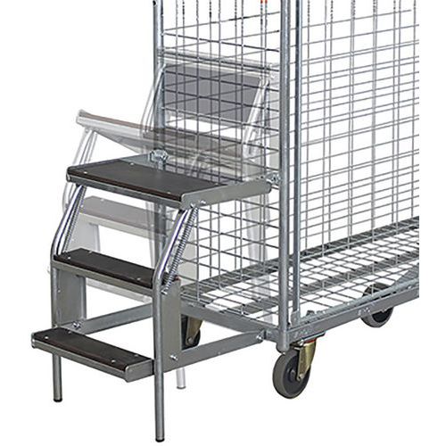 | Productnaam | Stapladder met 3 treden voor orderverzamelwagen, Type: Stapladder, Materiaal: Mechanisch gelast staal |