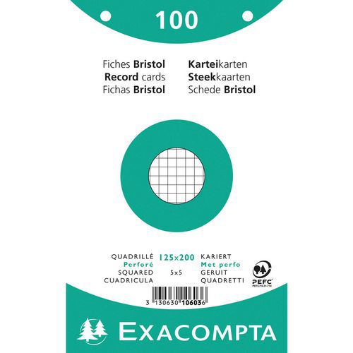 Pak 100 steekkaarten in folie - bristol geruit 5x5 geperforeerd - 125x200mm Kwalitatief en zeer consistent papier.