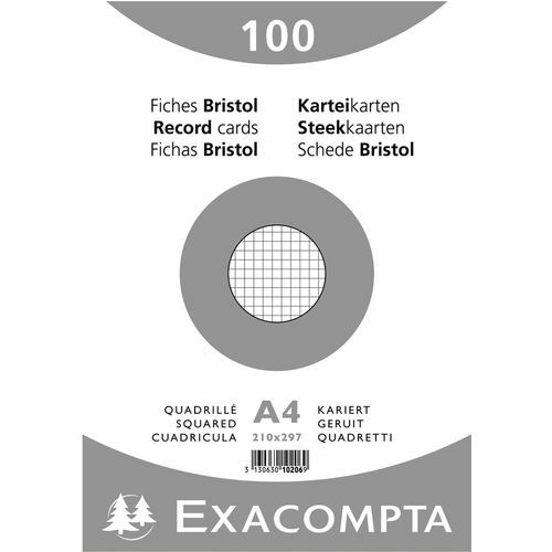 Pak 100 steekkaarten bristol in folie - geruit 5x5 niet geperforeerd 210x297mm Kwalitatief en zeer consistent papier.