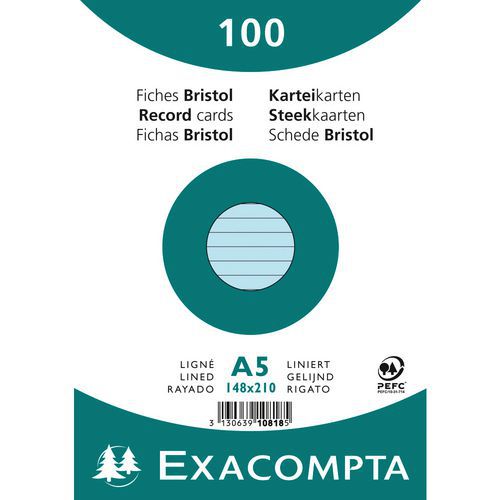 | Productnaam | Steekkaart folie 100vel bristol gelijnd 148x210mm Excacompta, Gramsgewicht: 205 g/m², Aantal vellen/riem: 100 |