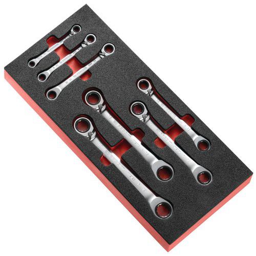 | Productnaam | Steeksleutelmodule met ratel gebogen onder 15° Spline, Type nr.: MODM.65J7, Aantal stuks: 8, Gewicht: 950 g |