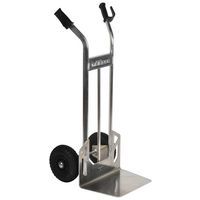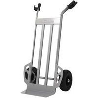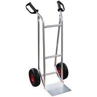 - Roestbestendige aluminium steekwagen met ergonomische handgrepen en gebogen achterkant.
