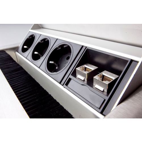 | Productnaam | Stekkerdoos zonder frezen Geborsteld RVS 3 stopcontact, Hoogte: 9.5 cm, Aantal contactdozen: 3 |