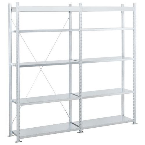 Samenstelling: 1 of 2 open jukken (basiselement 2, aanbouwstuk 1), 5 dichte legborden van plaatstaal, 1 montagehandleiding.