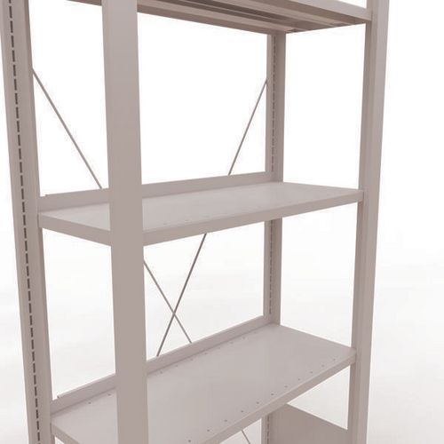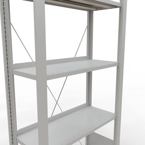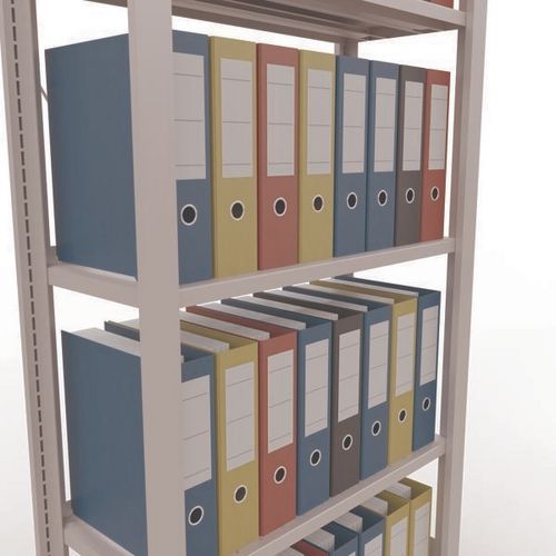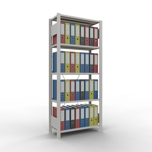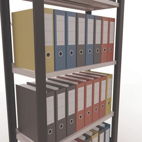 Mooi afgewerkte kantoorstelling voor lichte lasten. Legbord van plaatstaal voor allerlei soorten voorwerpen. Staander van dicht plaatstaal zonder perforatie aan de voorkant. Aanslagstang om te voorkomen dat voorwerpen kunnen vallen. Beschermende voet om de vloer te beschermen. Te monteren zonder gereedschap, met clipsysteem.