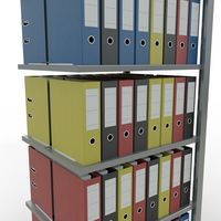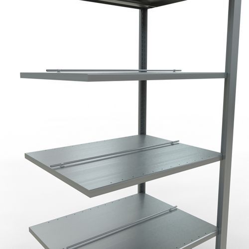 Mooi afgewerkte kantoorstelling voor lichte lasten. Legbord van plaatstaal voor allerlei soorten voorwerpen. Middenstop voor de afbakening van iedere zijde. Staander van dicht plaatstaal zonder perforatie aan de voorkant. Beschermende voet om de vloer te beschermen. Te monteren zonder gereedschap, met clipsysteem.