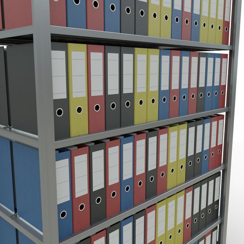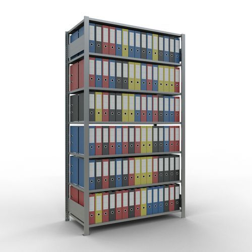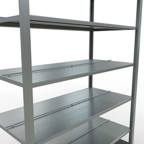 Mooi afgewerkte kantoorstelling voor lichte lasten. Legbord van plaatstaal voor allerlei soorten voorwerpen. Middenstop voor de afbakening van iedere zijde. Staander van dicht plaatstaal zonder perforatie aan de voorkant. Beschermende voet om de vloer te beschermen. Te monteren zonder gereedschap, met clipsysteem.