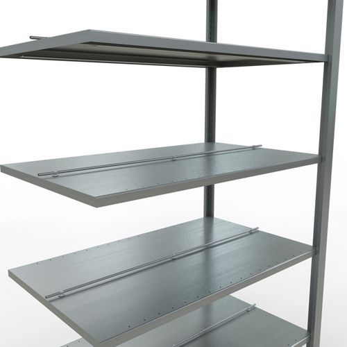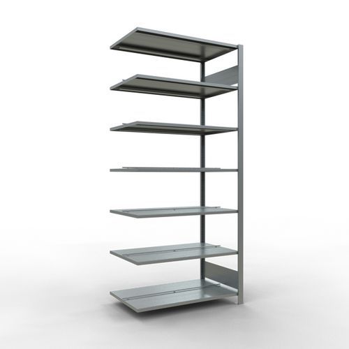 Mooi afgewerkte kantoorstelling voor lichte lasten. Legbord van plaatstaal voor allerlei soorten voorwerpen. Middenstop voor de afbakening van iedere zijde. Staander van dicht plaatstaal zonder perforatie aan de voorkant. Beschermende voet om de vloer te beschermen. Te monteren zonder gereedschap, met clipsysteem.