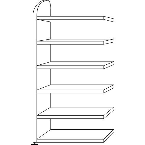 Kantoorstelling met verfijnde lijnen en een verzorgde afwerking. Eenvoudig te monteren en uit te breiden stelling door het toevoegen van uitbreidingen. Mooie afmetingen voor een grote opbergruimte. Zeer stabiele structuur met boutbevestiging.