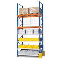 Stelling Hybrid met en zonder valbeveiligingsrooster, Max. belasting per niveau: 565 kg, Hoogte: 4500 mm Stelling Hybrid met en zonder valbeveiligingsrooster, Max. belasting per niveau: 565 kg, Hoogte: 4500 mm