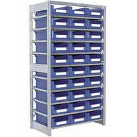 Opslag met legborden met bakken. Eenvoudig al uw kleine onderdelen opslaan en terugvinden. Groot opbergvolume dankzij rechte hoeken en gladde oppervlakken. Snelle montage, zonder schroeven of bouten. Legbord met aanslag aan de achterzijde als valbescherming.
