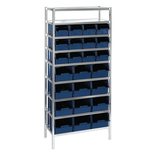 | Productnaam | Stelling met Mix C/40 bakken, Totale hoogte: 2000 mm, Totale breedte: 430 mm, Gewicht: 55 kg |