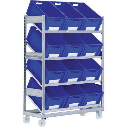| Productnaam | Stelling met schuine legborden 12 bakken, verrijdbaar, Max. belasting per niveau: 100 kg, Lean Management: ja |