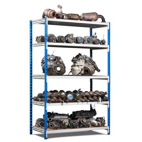 Stelling Rang Eco Plus met 5 niveaus is speciaal ontworpen voor en aangepast aan dit type opbergen of opslag. Ontworpen voor zware en grote lasten. Systeem kan worden uitgebreid, zowel op hoogte als op lengte. Hiermee kan een basiselement met één of meerdere aanbouwstukken worden gemonteerd. Als kit geleverd, kan snel zonder gereedschap worden gemonteerd. De legborden zijn elke 5 cm verstelbaar en de facto bevestigd met 3 klemmen. Deze stelling heeft ook een systeem voor bevestiging op de vloer voor elke voet.