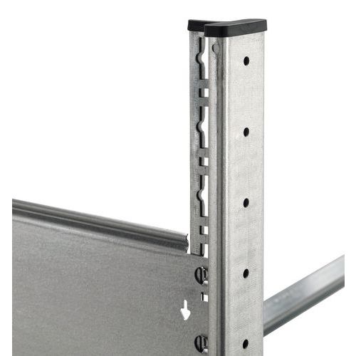 Samenstelling: 4 of 2 staanders (basiselement 4, aanbouwstuk 2), 6, 8 of 10 liggers afhankelijk van de hoogte van de stellingen, volledige schroevenset (buiten de bevestiging op de vloer), 1 montagehandleiding.