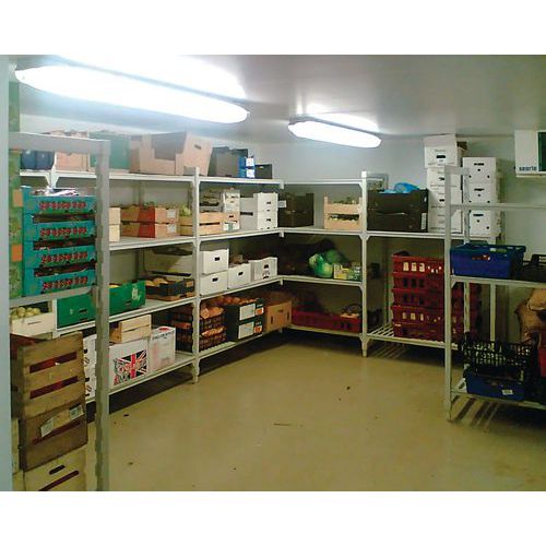 Stelling die aan alle eisen voor de veiligheid van voedingsmiddelen voldoet. Stevige constructie met een bekleding van polypropyleen en een stalen binnenste. Uitbreiding door het toevoegen van 1 of meer aanbouwelementen, volgens de gewenste configuratie. Hygiënisch omdat de structuur gemakkelijk te onderhouden is. Snelle en eenvoudige installatie van de stelling, zonder schroeven.
