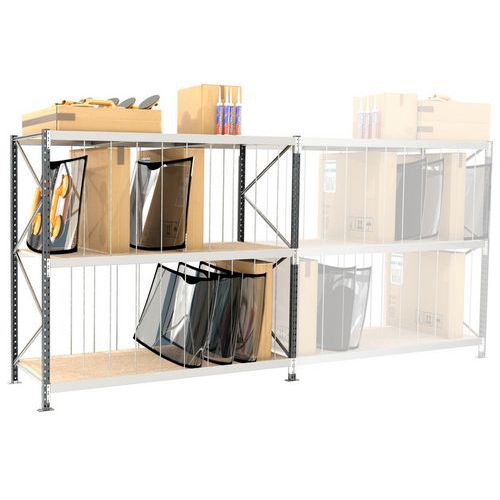 Let op: de 'aanbouwstelling' kan niet afzonderlijk worden geïnstalleerd, aangezien de stelling maar 1 kant heeft. Het is een aanbouwelement dat aan de staanders van de voorgaande stelling moet worden bevestigd.