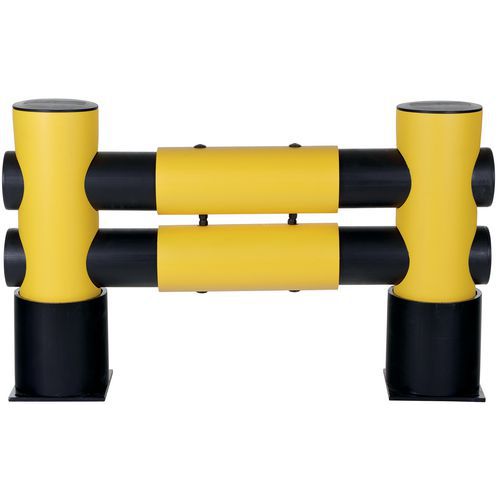 Stellinghek speciaal ontworpen om schokken te absorberen die worden veroorzaakt door botsingen met transportapparatuur. Niet-corrosief materiaal voor gebruik buiten en binnen. Voor buiten en binnen. Bestand tegen UV-stralen en hoge ISO/TR 10358. TÜV-certificaat.