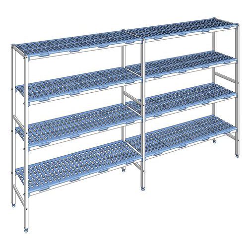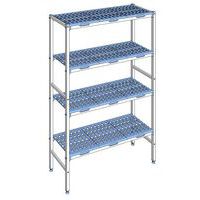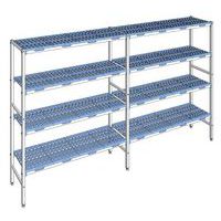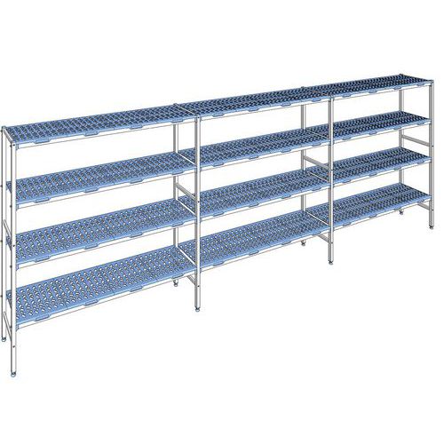 Rayonnage modulable norme alimentaire à clayettes polyéthylène haute densité.
