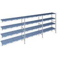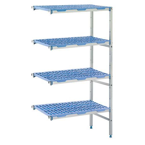 Modulair voedselrek volgens voedselnormen met planken van hoogdichtheidpolyethyleen.