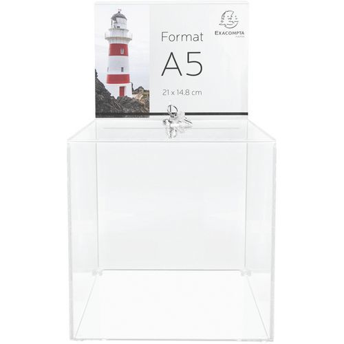 Stembus transparant met deksel, Breedte: 210 mm, Lengte: 210 mm, Hoogte: 365 mm, Type: Presenteren