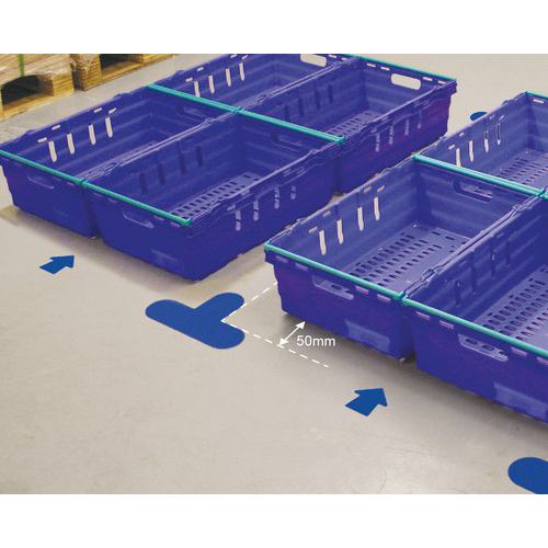 Sticker voor grondmarkering T-vormig 200 x 300 - Manutan Expert T-vormige sticker voor grondmarkering. Ontworpen voor markering van zones en opslagstellingen in magazijnen.