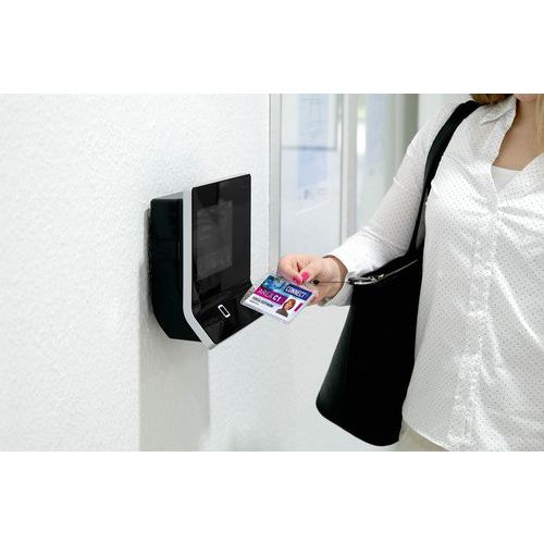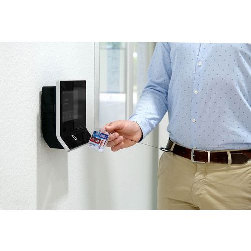 Met metalen riemclip, zodat u de badge altijd onder handbereik heeft.