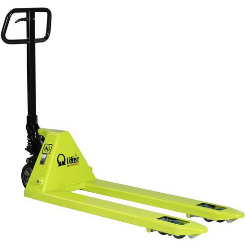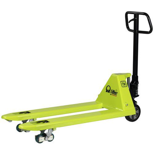 | Productnaam | Stille handpalletwagen, Max. belasting: 2000 kg, Lengte vork: 1150 mm, Stuurwiel materiaal: Rubber |