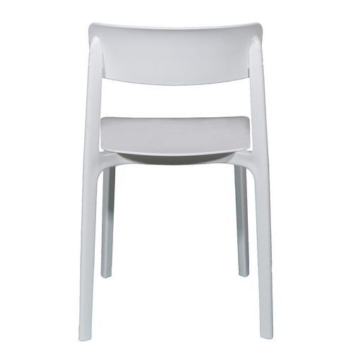 Deze stoel van polypropyleen voor binnen- en buitengebruik is zeer onderhoudsvriendelijk.