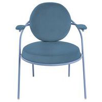 Modern ontwerp Langere levensduur: de zitting en rugleuning kunnen vervangen worden, de stof is niet verwijderbaar Stapelbaar Frame: buis Ø20 mm van 100% gerecycled staal met een epoxy-afwerking Zitting: multiplex paneel, dikte 12 mm Voering zitting: polyurethaanschuim 30 kg/m3, dikte 70 mm Voering rugleuning: polyurethaanschuim 30 kg/m3, dikte 60 mm Voering armleggers: polyurethaanschuim 30 kg/m3, dikte 15 mm