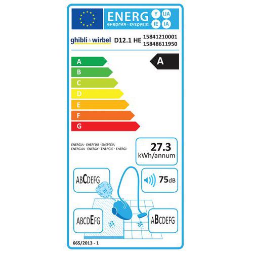 | Productnaam | Stofzuiger Ghibli Power D 12 HE, Totale inhoud: 12 L, Geluidsniveau: 75 dB, Productgewicht: 7 kg |
