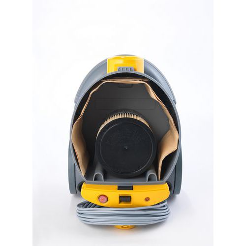 Telescopische buis en verwijderbare kabel. Indicator stofzak vol. Accessoirehouder. Contactdoos voor elektrische borstel. Goede hanteerbaarheid gegarandeerd door de zwenkwielen vóór en achter.