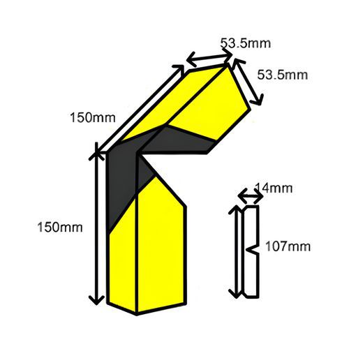 | Productnaam | Stootrand van schuim Amortiflex®, Dikte: 14 mm, Lengte: 300 mm, Breedte: 107 mm, Kleur: Zwart/geel |