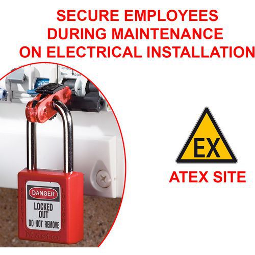 | Productnaam | Stroomonderbreker nr. 2391- Master Lock, Kleur: Rood, Ø: 13 mm, Materiaal: Thermoplastisch elastomeer (TPE) |