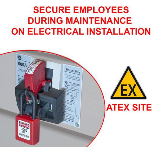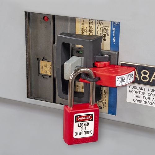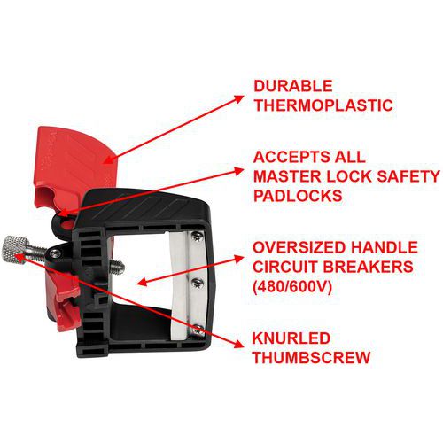 - Het Master Lock S3823 Grip Tight™ stroomonderbrekerblok is geschikt voor stroomonderbrekers met grote handgrepen (480/600 V).